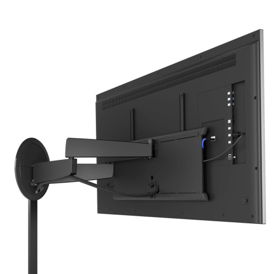 MotionMount má veľký rozsah pohybu dopredu vďaka 4 dlhým a výkonným oporným ramenám. Motorický pohyb umožňuje posunúť televízor dopredu až o 72 cm. Vďaka tomu je nástenný držiak televízora vhodný aj na montáž do skrine alebo výklenku.