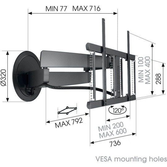 • Vzdialenosť od steny 77 – 716 mm