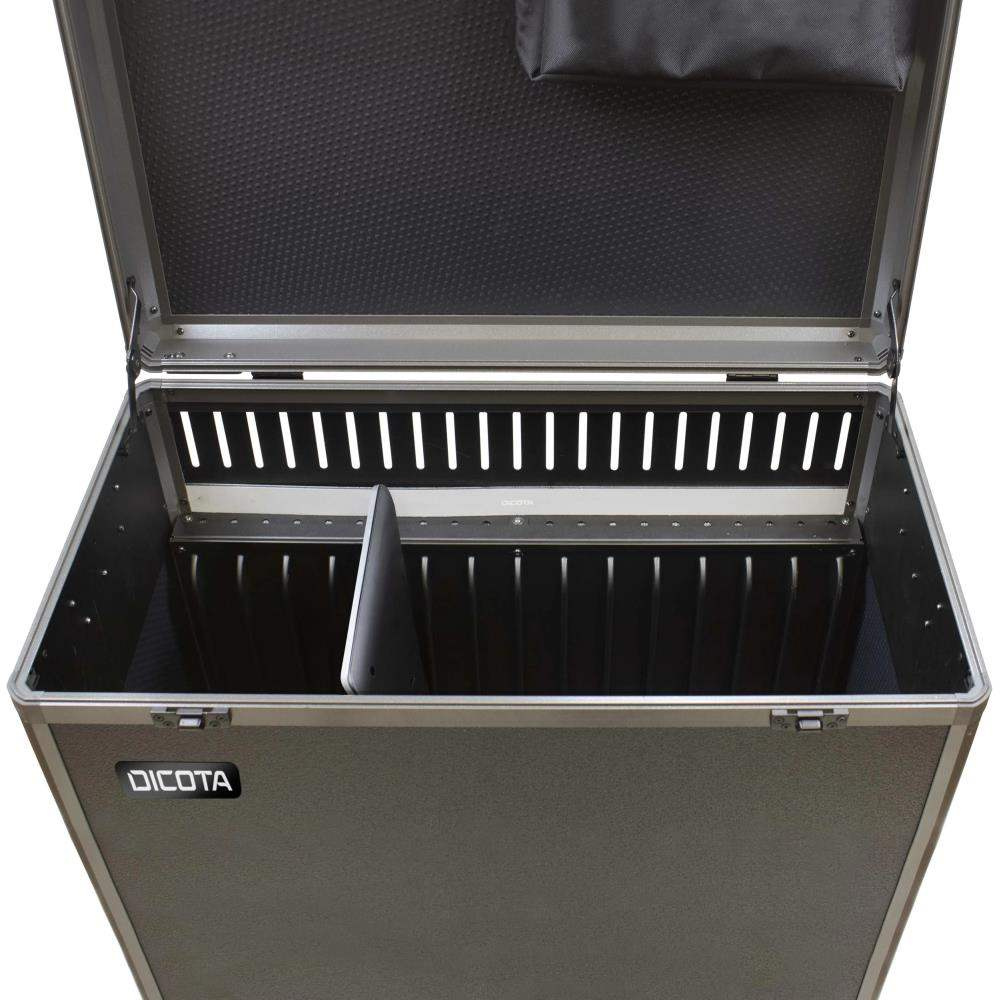Data Box XL Trolley je robustný kufor s odnímateľným systémom vozíkov pre notebooky do 15.6". Praktické a mimoriadne robustné hliníkové puzdro s výklopným vreckom na tlačiareň umožňuje používateľovi profesionálnu prácu na cestách a zaručuje bezpečnú prepravu notebooku a tlačiarne! Nový výsuvný jazyk na papier zachytí vytlačené dokumenty až do veľkosti DIN A4. Špeciálny princíp "Floor-to-desk", ktorý vyvinula spoločnosť DICOTA, znamená, že tlačiareň a sieťový adaptér zostávajú počas používania kompletne zapojené v puzdre. Notebook sa dá voľne používať na stole. Vozík Data Box XL je tiež uzamykateľný; dodávajú sa dva kľúče. Údaje sa bežne prenášajú pomocou káblov tlačiarne alebo cez Bluetooth. Tlačiareň sa ovláda a batéria sa nabíja prostredníctvom konektora 220/230 V pre nízkoenergetické zariadenie na vonkajšom plášti skrine. Konektor zariadenia s nízkou teplotou môže byť pri preprave zakrytý gumovou krytkou. Odnímateľný systém vozíkov zabezpečuje mimoriadne pohodlnú prepravu vašej mobilnej kancelárie. Ak by ste v určitom okamihu funkciu vozíka nepotrebovali, systém vozíka sa dá veľmi jednoducho odstrániť rýchlym pohybom. Vozík Data Box XL je vhodný pre všetky obľúbené notebooky do 15.6" a pre mobilnú tlačiareň HP OJ 250 - s podporou alebo bez podpory prenosnej súpravy Canon. Ďalšie tlačiarne sú k dispozícii na požiadanie. Upevnenie tlačiarne pre mobilnú tlačiareň HP OJ 250 integrované v skrinke kufra, v závislosti od modelu. Pri výmene tlačiarne možno tento držiak tlačiarne vymeniť za iný model (k dispozícii ako voliteľné príslušenstvo) jednoduchým uvoľnením štyroch imbusových skrutiek Polstrované vrecko na notebook Obzvlášť robustné puzdro Princíp "od podlahy k stolu" Vnútorná kabeláž Uzamykateľná schránka, dva kľúče v balení Konektor pre nízkoenergetické zariadenie 220 V na vonkajšom plášti puzdra Prenos dát bežnými prostriedkami alebo prostredníctvom Bluetooth Odnímateľný systém vozíka Presné prispôsobenie pre HP OJ 250 Viac informácií Viac informácií Číslo položky D31846 Farba čierna Objem v litroch 0 Materiál Hliník / Con-Pearl® Záruka 24 mesiacov EAN 7640186419796 Max. Rozmery zariadenia (mm) 410 x 310 x 60 mm 16.14 x 12.2 x 2.36 palcov Rozmery výrobku (mm) 455 x 445 x 280 mm 17.91 x 17.52 x 11.02 palcov Hmotnosť 7.4 kg / 16.28 libier..