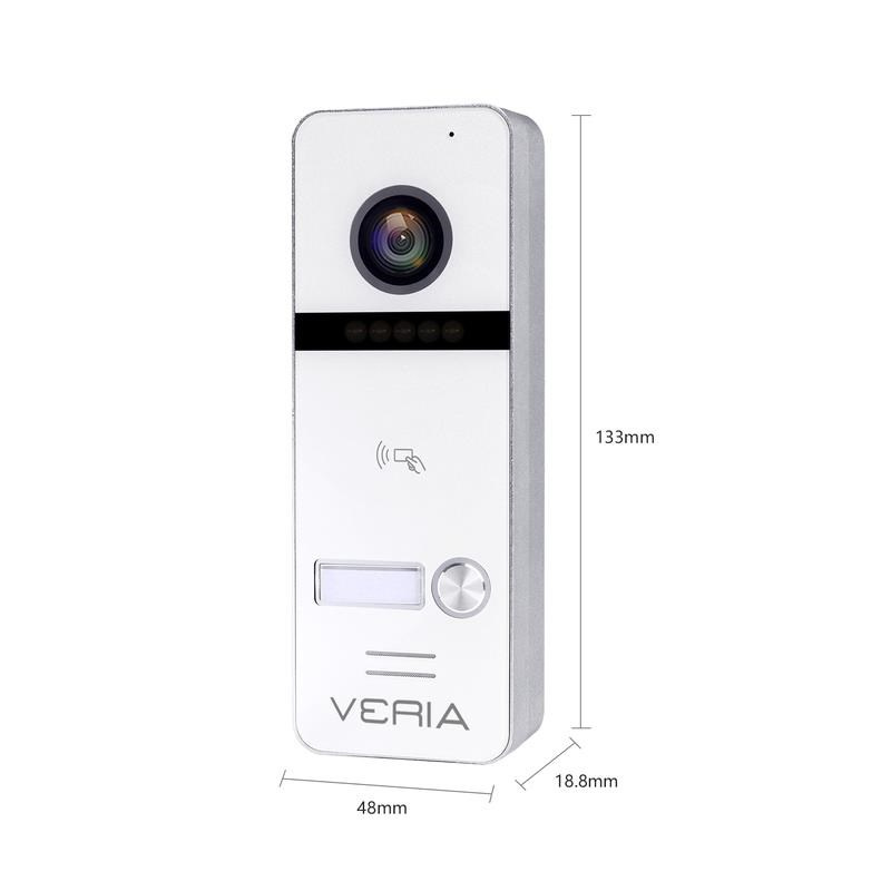 Vstupná kamerová jednotka VERIA 301 je vhodná na prepojenie s monitormi VERIA rady 3xxx. Kamerová jednotka sníma obraz vo Full HD rozlíšení, pre nočný prísvit používa IR LED diódy a pre kvalitný obraz IR Cut filter. Vstupná stanica disponuje vstavanou čítačkou RFID čipov 13,56 MHz. Prepojenie medzi monitorom a vstupnou stanicou je 4-vodičové.