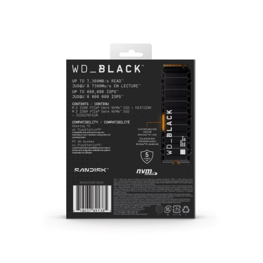 WD BLACK SSD NVMe 1TB PCIe SN850X Powered by SanDisk, Gen4, (R:7300, W:6300MB/s), Chladič