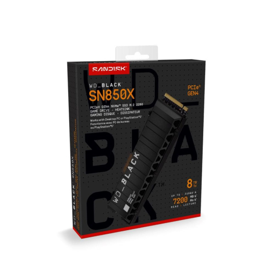 WD BLACK SSD NVMe 8TB PCIe SN850X, Powered by SanDisk, Gen4, (R:7200, W:6600MB/s), Chladič