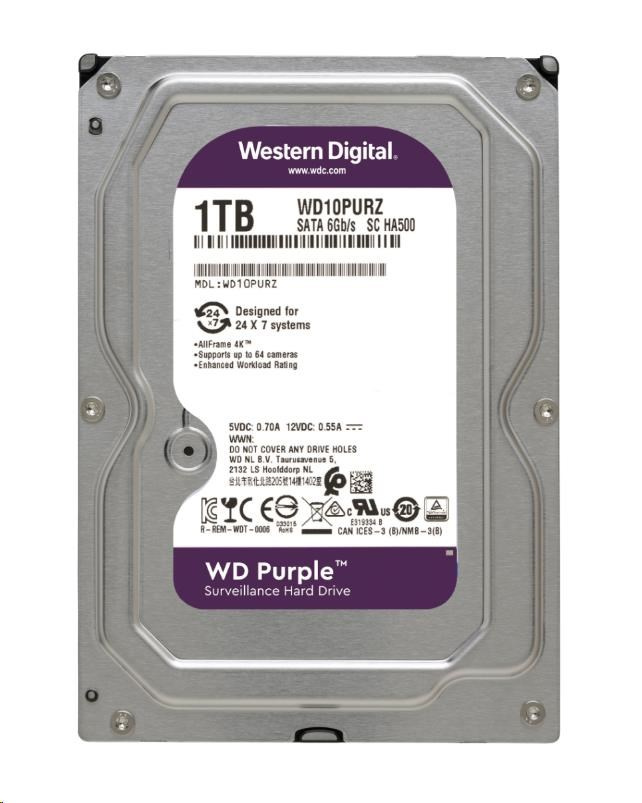 WD PURPLE WD10PURZ 1TB SATA/600 64MB cache, nízka hlučnosť, CMR