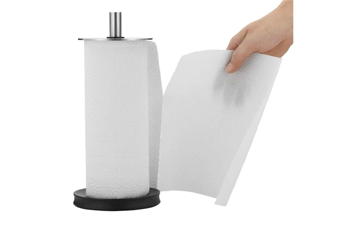 • Stabilná základňa: Široká a zaťažená spodná časť zaisťuje, že držiak pevne stojí na pracovnej ploche aj pri odtrhávaní utierok jednou rukou.