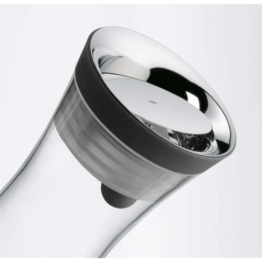 - Kvalitné materiály: Telo karafy je vyrobené z prvotriedneho skla, ktoré dopĺňa uzáver z ušľachtilej nerezovej ocele Cromargan® 18/10 a silikónu.