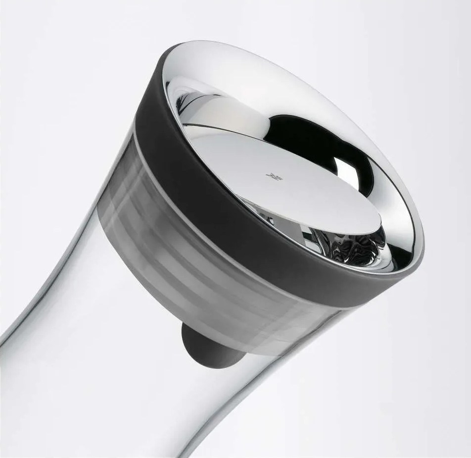 - Kvalitné materiály: Telo karafy je vyrobené z prvotriedneho skla, ktoré dopĺňa uzáver z ušľachtilej nerezovej ocele Cromargan® 18/10 a silikónu.