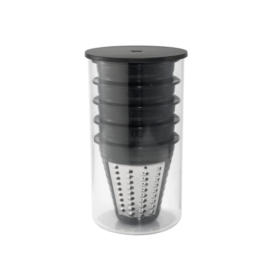 Pokud se neobjedete bez svého čerstvého a zdravého salátu ani na cestách, je pro vás struhadlo Salad-to-go to pravé. Tento malý kuchyňský pomocník naseká všechny druhy ovoce a zeleniny od mrkve po zelí, poradí si s tvrdými surovinami jako ořechy, a nakonec rozkrájí sýr rychlostí blesku do praktické cestovní misky, která je samozřejmě bez bisfenolu A. Mistička na dresing je připevněna do víčka. Salát tak zůstane čerstvý a křupavý a Vy do něj můžete přidat domácí dresing těsně před konzumací. Součástí struhadla je také 5 vyměnitelných nástavců z nerezové oceli Cromargan®, každý z nich k jinému použití.