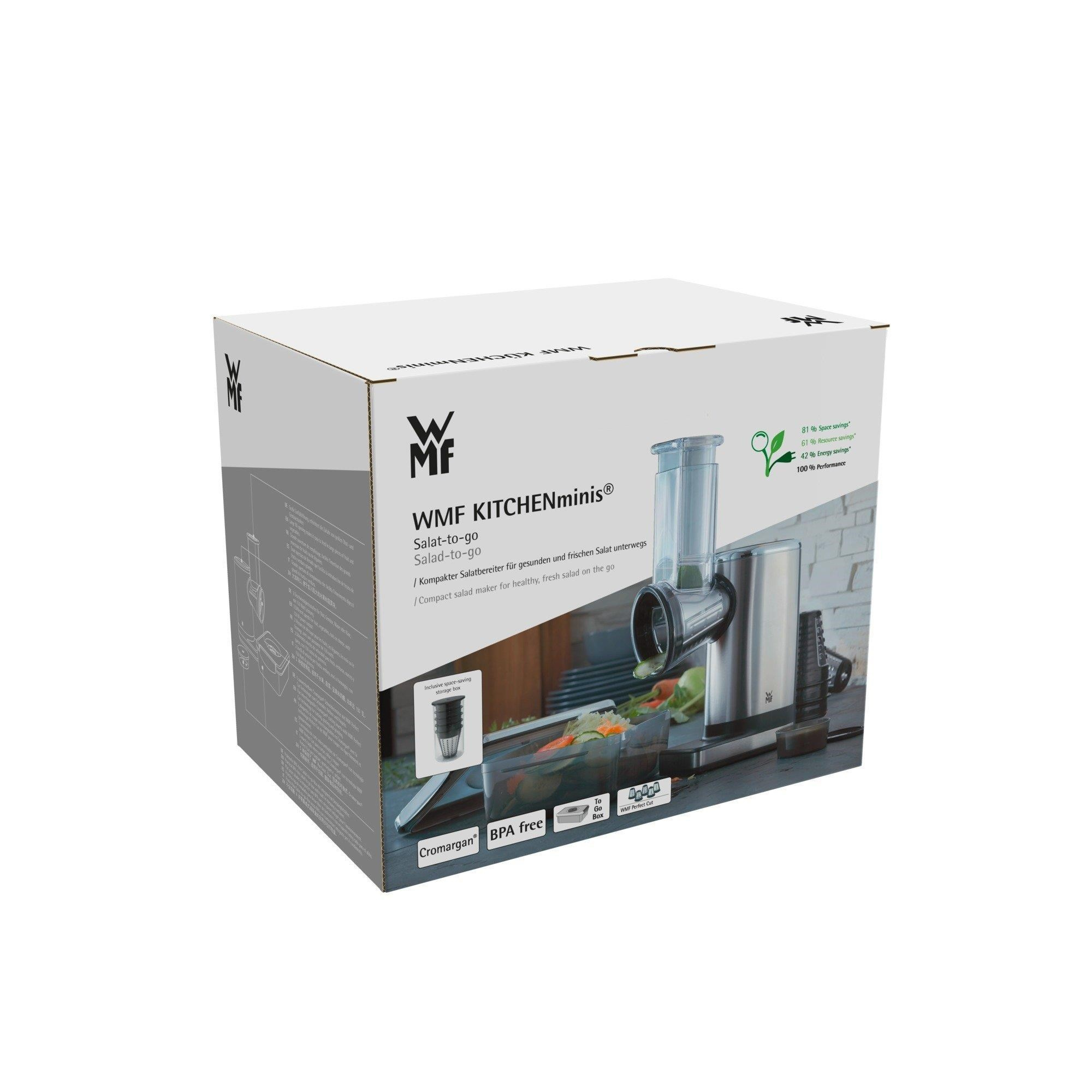 WMF KITCHENminis Salad-to-go struhadlo, 150 W, nerezová ocel, krájecí nástavce