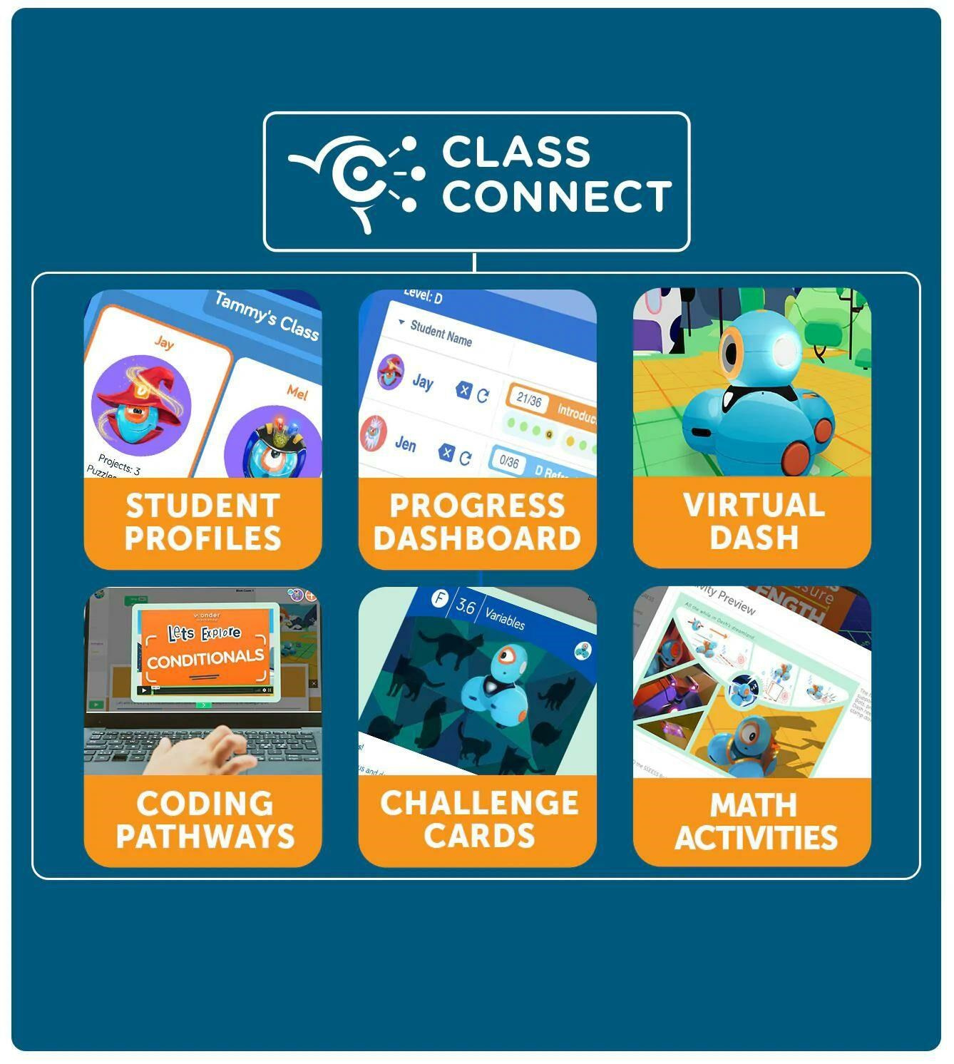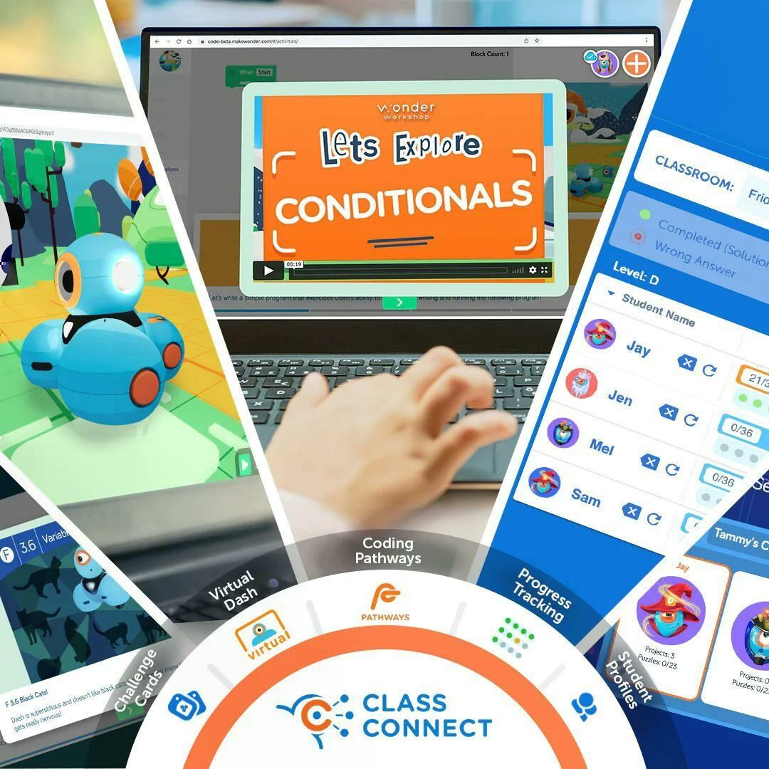Wonder Pack obsahuje všetok hardvér a softvér, ktorý potrebujete na to, aby ste deťom v triedach sprístupnili programovanie! Toto balenie obsahuje Sketch Kit, ktorý z robota Dashe urobí kresliaci nástroj. Súčasťou je tiež Launcher, Gripper Building Kit a dvojica LEGO konektorov – ideálny spôsob, ako získať kompletnú sadu príslušenstva! Súčasťou tohto balenia je aj ročná licencia na Class Connect pre 2 študentov. Vďaka platforme Class Connect majú žiaci k dispozícii rozsiahle zásoby lekcií, aktivít a hádankových úloh, ktoré môžu plniť v aplikácii Blockly a naučiť sa tak dôležité zručnosti v oblasti programovania a aplikovať ich na reálne príbehové výzvy. Obsah balenia: Dash robot Sketch Kit Launcher Gripper Building Kit Building Brick Connectors