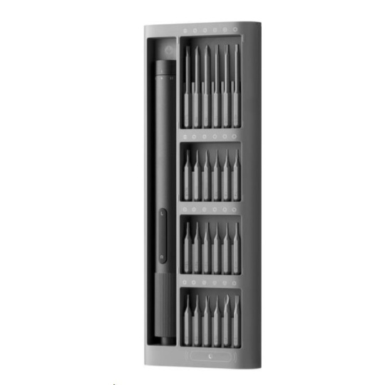 - Obsah balenia: 1x skrutkovačka, 1x puzdro, 24x skrutkovacia hlavička, 1x nabíjací kábel typu C, 1x návod