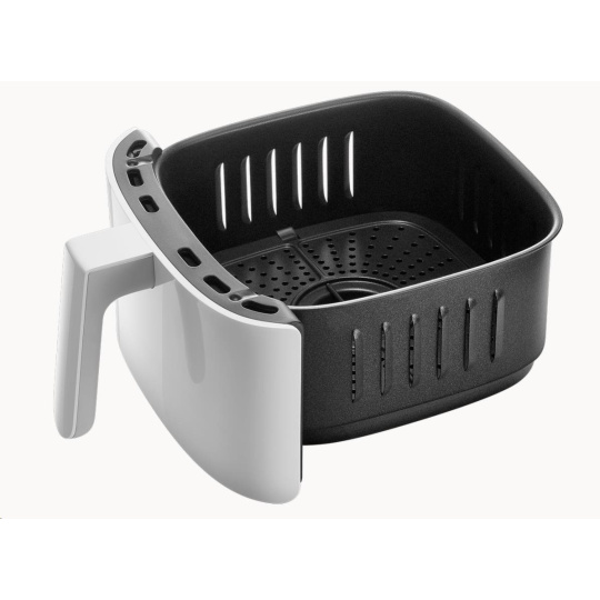 Olej vo vnútri jedla je dôkladne smažený 360 ° cirkuláciou ohriateho vzduchu a poskytuje chutné jedlo s menším množstvom tuku. Vysokorýchlostná cirkulácia tepelného prúdu zabezpečuje rovnomerné zahrievanie jedál, vytvára chrumkavú vonkajšiu vrstvu a vnútro zostáva mäkké. Po dokončení varenia je olej zachytený z jedla a jasne viditeľný na dne koša a jedlo chutí, ako by bolo smažené na oleji. Jedlo je tak chutné a navyše s nízkym obsahom tuku!