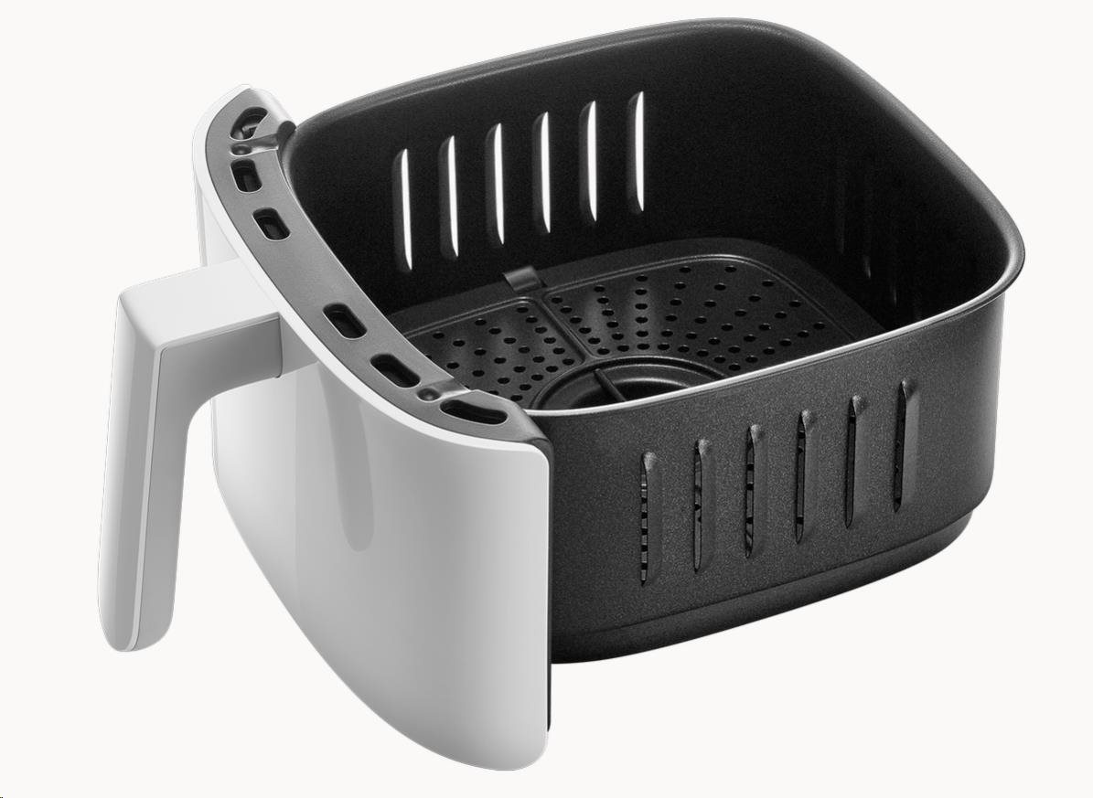 Olej vo vnútri jedla je dôkladne smažený 360 ° cirkuláciou ohriateho vzduchu a poskytuje chutné jedlo s menším množstvom tuku. Vysokorýchlostná cirkulácia tepelného prúdu zabezpečuje rovnomerné zahrievanie jedál, vytvára chrumkavú vonkajšiu vrstvu a vnútro zostáva mäkké. Po dokončení varenia je olej zachytený z jedla a jasne viditeľný na dne koša a jedlo chutí, ako by bolo smažené na oleji. Jedlo je tak chutné a navyše s nízkym obsahom tuku!
