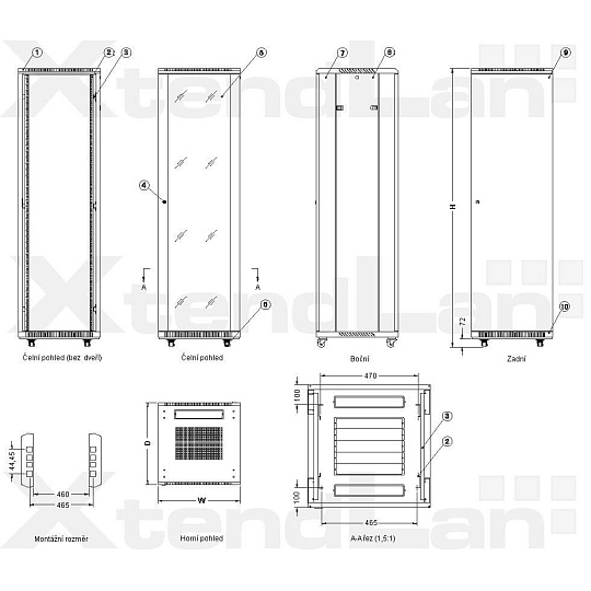 XtendLan 19" stojanový rozvaděč 47U - rozložený