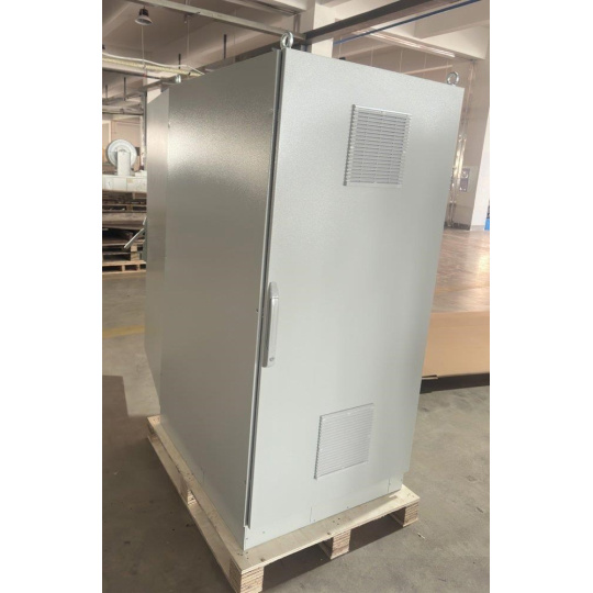 Rozvádzač na inštaláciu dátových a telekomunikačných zariadení, ventilácia s termostatom, podstavec, šedý.