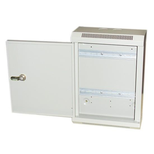 Kovová rozvodná skriňa pre vnútorné inštalácie s DIN lištou. Skrinka je vybavená kovovým zámkom a vetracími otvormi.