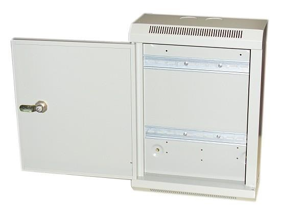Kovová rozvodná skriňa pre vnútorné inštalácie s DIN lištou. Skrinka je vybavená kovovým zámkom a vetracími otvormi.
