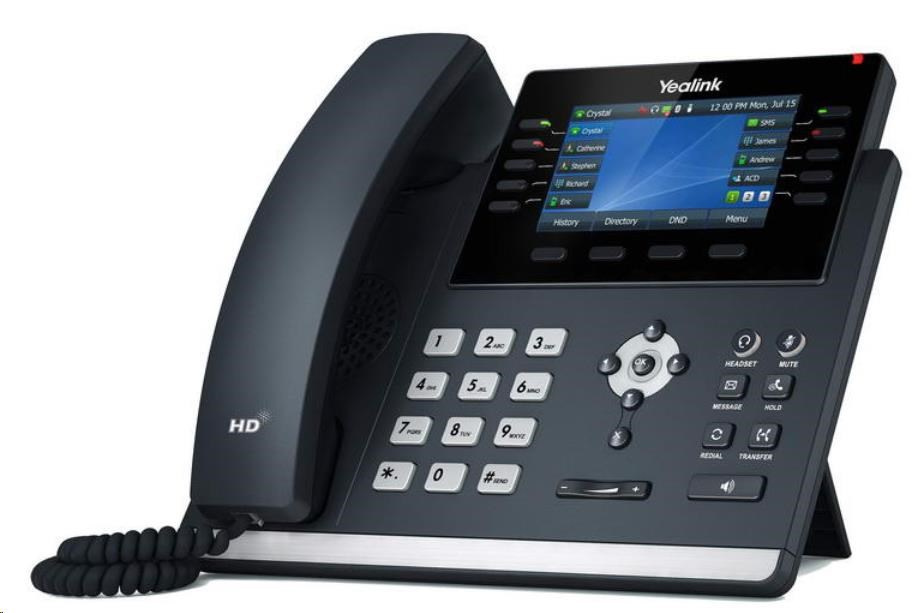 IP telefón Yealink SIP-T46U, 4,3" 480x272 farieb, 2x RJ45 10/100/1000, PoE, 16x SIP, 2x USB, bez adaptéra
