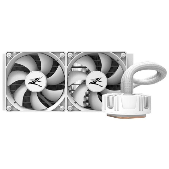 Vodný chladič určený na chladenie širokej škály procesorov. Vyznačuje sa vysokou kvalitou, výkonom a spoľahlivosťou. Disponuje dvomi 120 mm ventilátormi. Odolné opletené hadice sú dlhé 400 mm a vďaka dostatočne širokému priemeru zaručujú plynulý prietok chladiva. Chladič disponuje ARGB podsvietením integrovaným v chladicom bloku, vďaka čomu si môžete úplne prispôsobiť vzhľad chladiča.