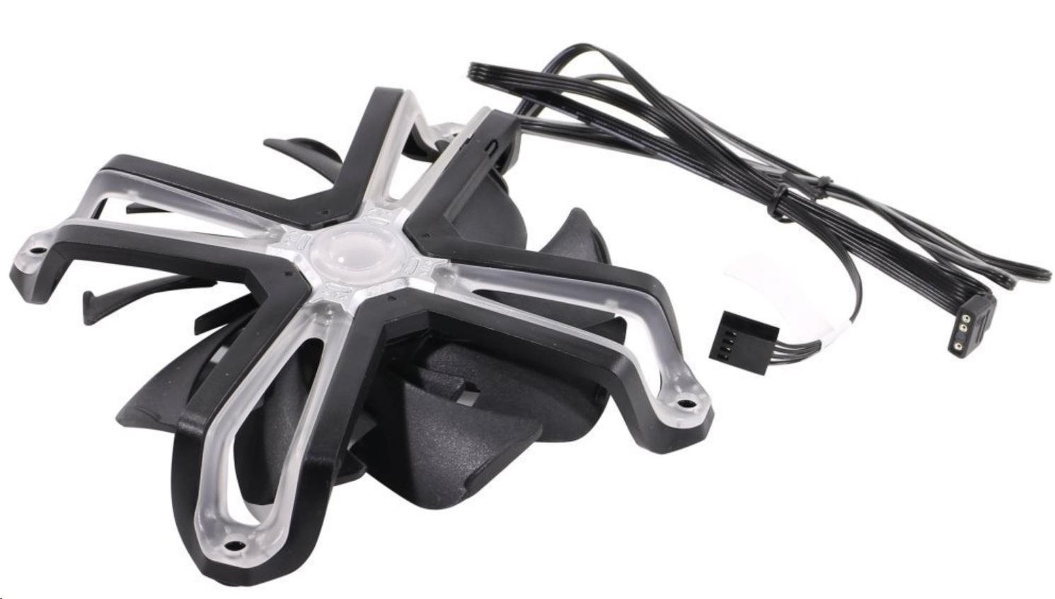 Tichý ventilátor s podsvietením ARGB v modernom dizajne Spider. Je vybavený štandardným 4-kolíkovým konektorom na ovládanie rýchlosti a 3-kolíkovým konektorom ARGB na ovládanie osvetlenia LED. Ložiská FDB zaručujú vysokú životnosť ventilátora aj pri nepretržitej prevádzke. Priemer ventilátora je 140 mm.