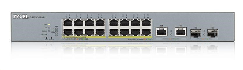 Zyxel GS1350-18HP 18portový inteligentný spravovaný CCTV PoE switch, dlhý dosah, 250W, 16x GbE, 2x combo RJ45/SFP