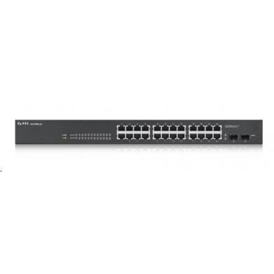 Zyxel GS1900-24 v2 26portový gigabitový webový inteligentný prepínač, 24x gigabitový RJ45, 2x SFP, bez ventilátora