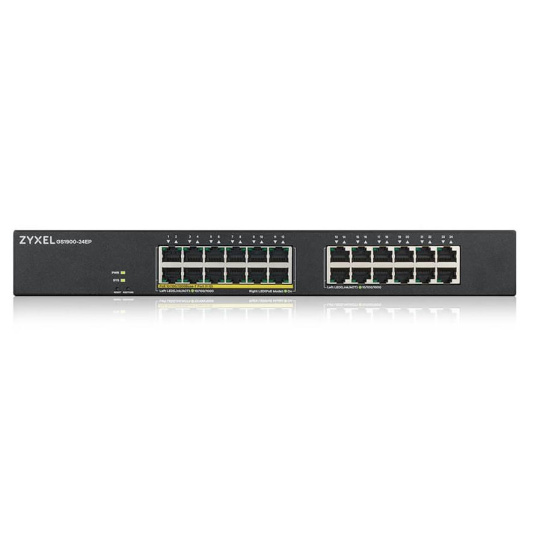 Zyxel GS1900-24EP 24-portový gigabitový inteligentný riadený PoE prepínač, 24x gigabitový RJ45 (12x PoE), rozpočet PoE 130W
